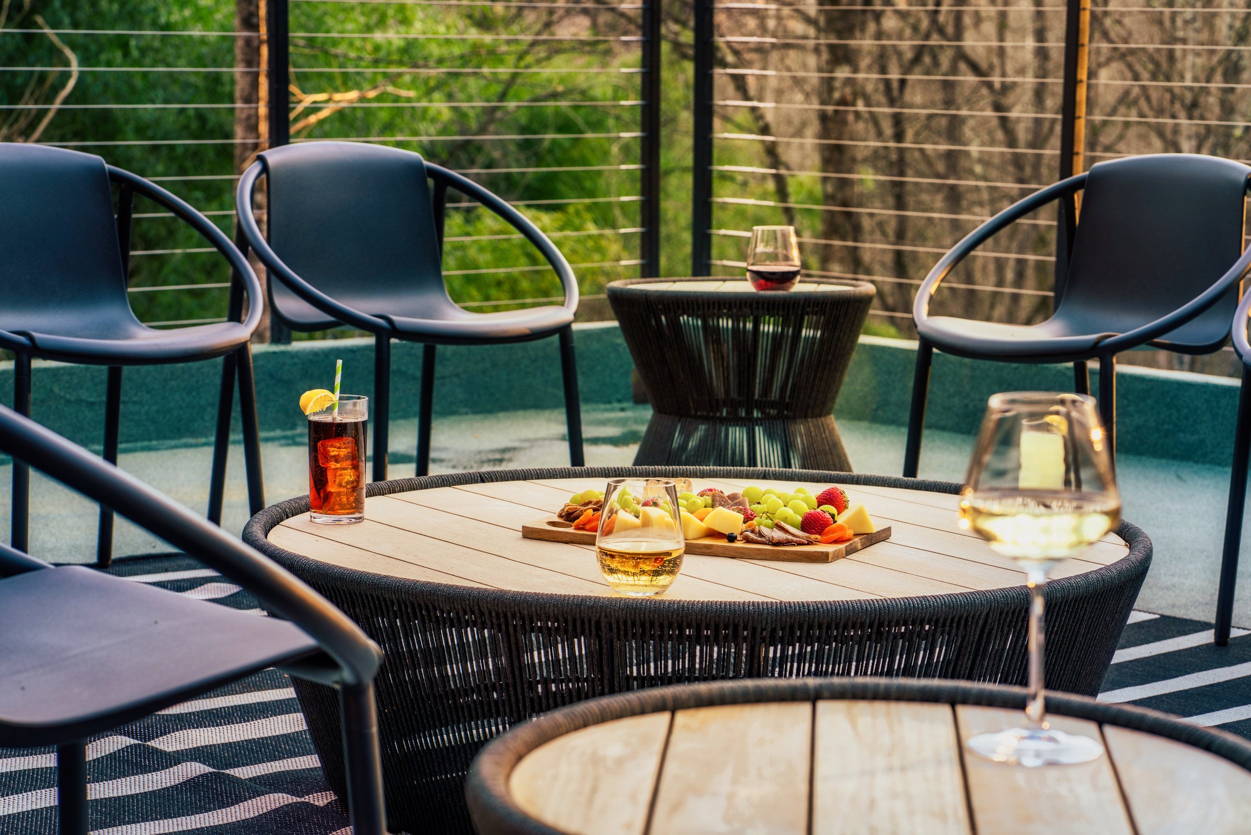 Gather on a covered deck among the treetops with a grill, pizza oven, and full outdoor kitchen. Seats 12 for memorable meals surrounded by the beauty of the forest. Sear, sizzle, and savor fresh meals among the treetops.