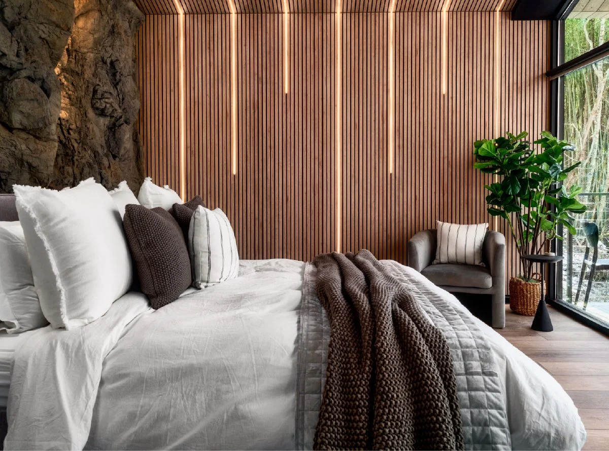 Unwind in the living room or gather on the deck among the treetops. The Hideout is your place to create a serene and luxurious forest-side escape.