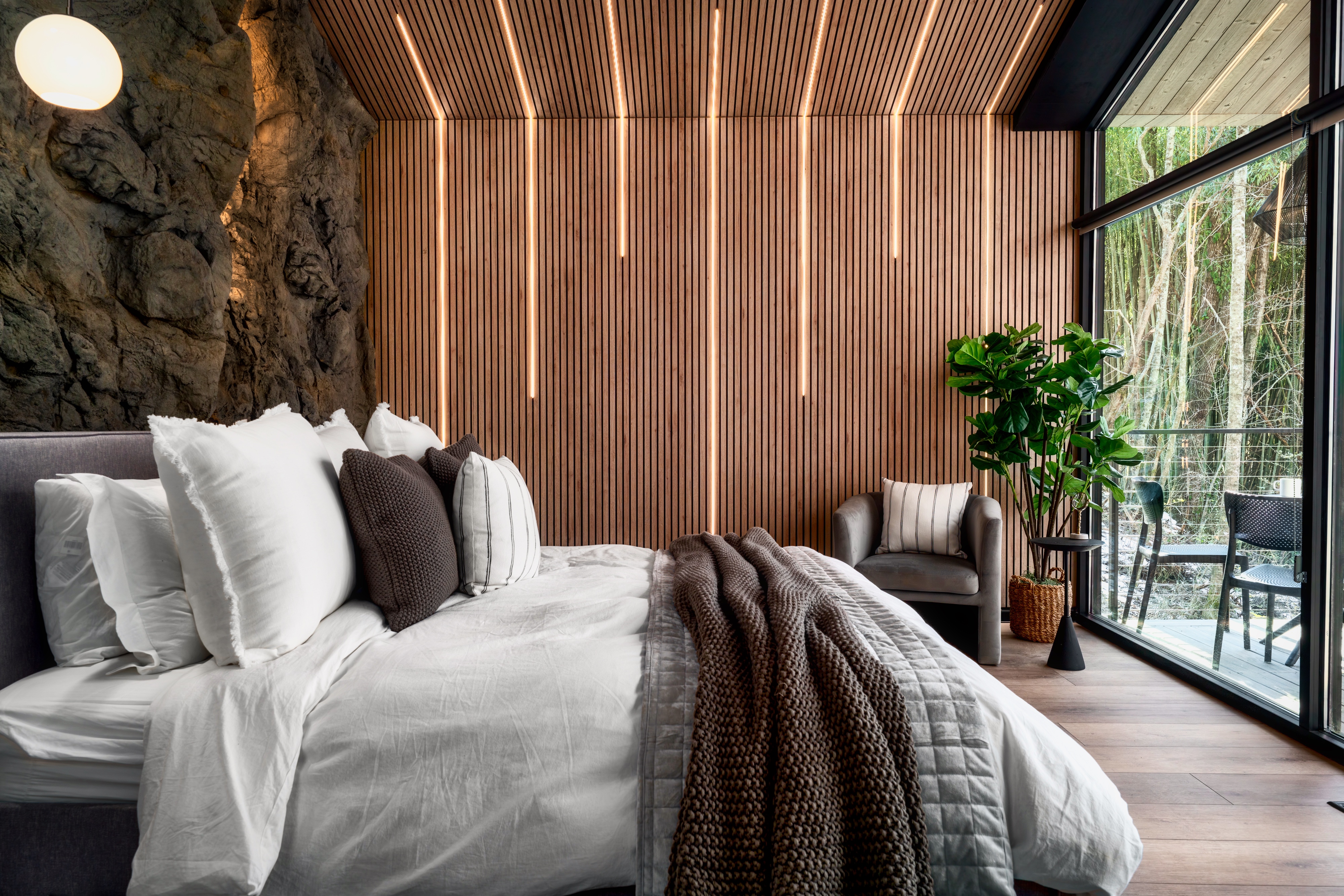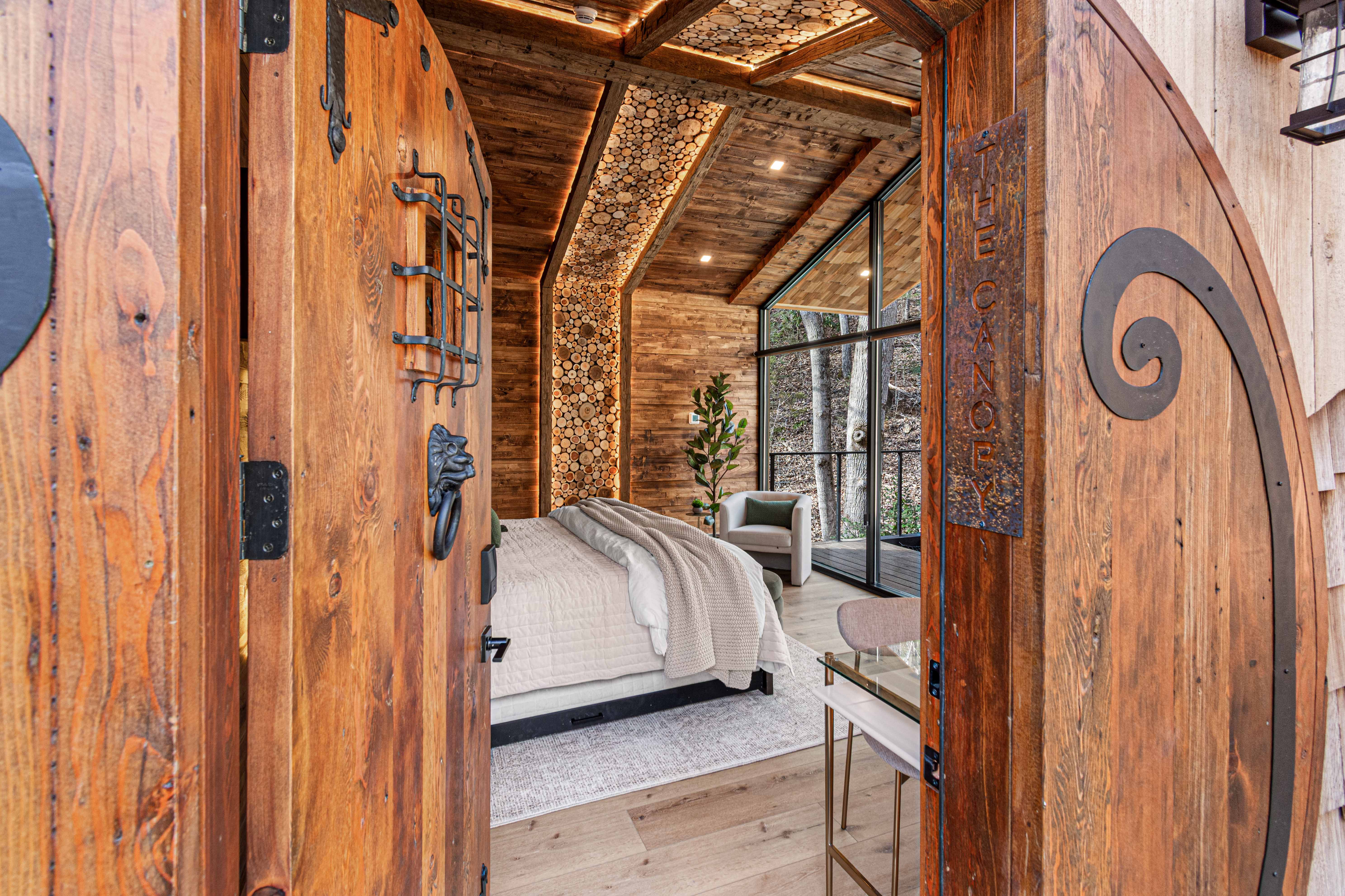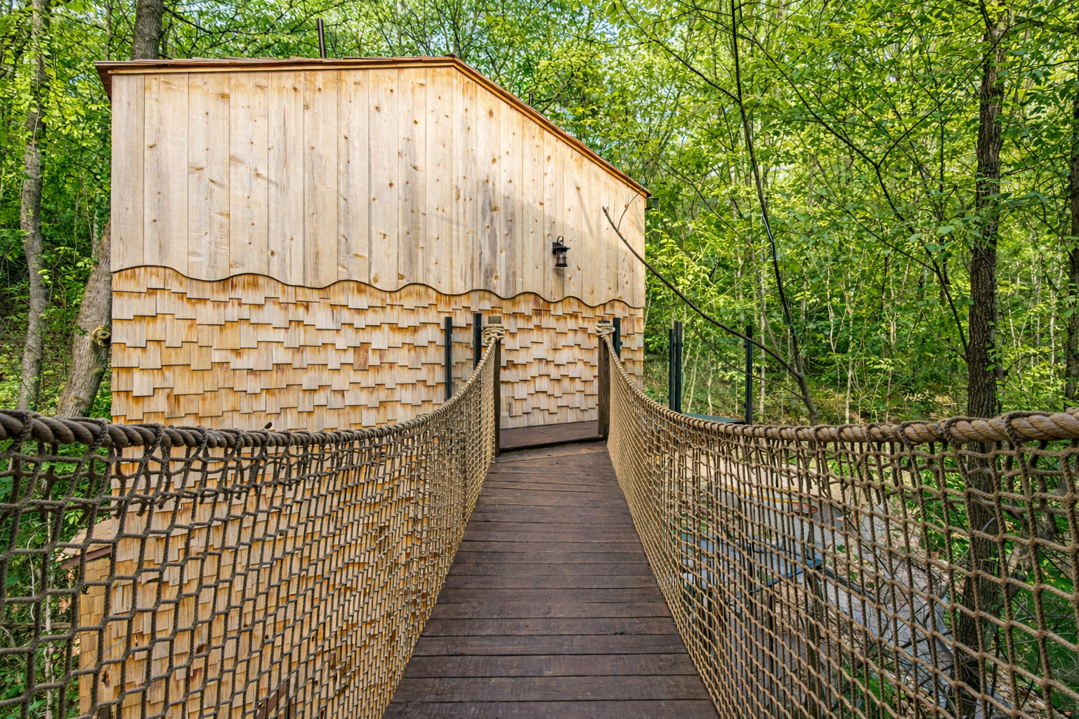 Escape to the Extraordinary at The Hideout Nestled in the Smoky Mountains, The Hideout is a four-story treetop retreat where luxury, adventure, and imagination converge. Spiral down a 37' tall glass slide into a glow-in-the-dark mini golf haven, cross suspended rope bridges linking cabins with panoramic forest views, and enjoy five curated luxury bedrooms, a swim spa, high end game room, outdoor bowling, sauna, sunken fire pit, yard games & more. Everything you need for an unforgettable escape!