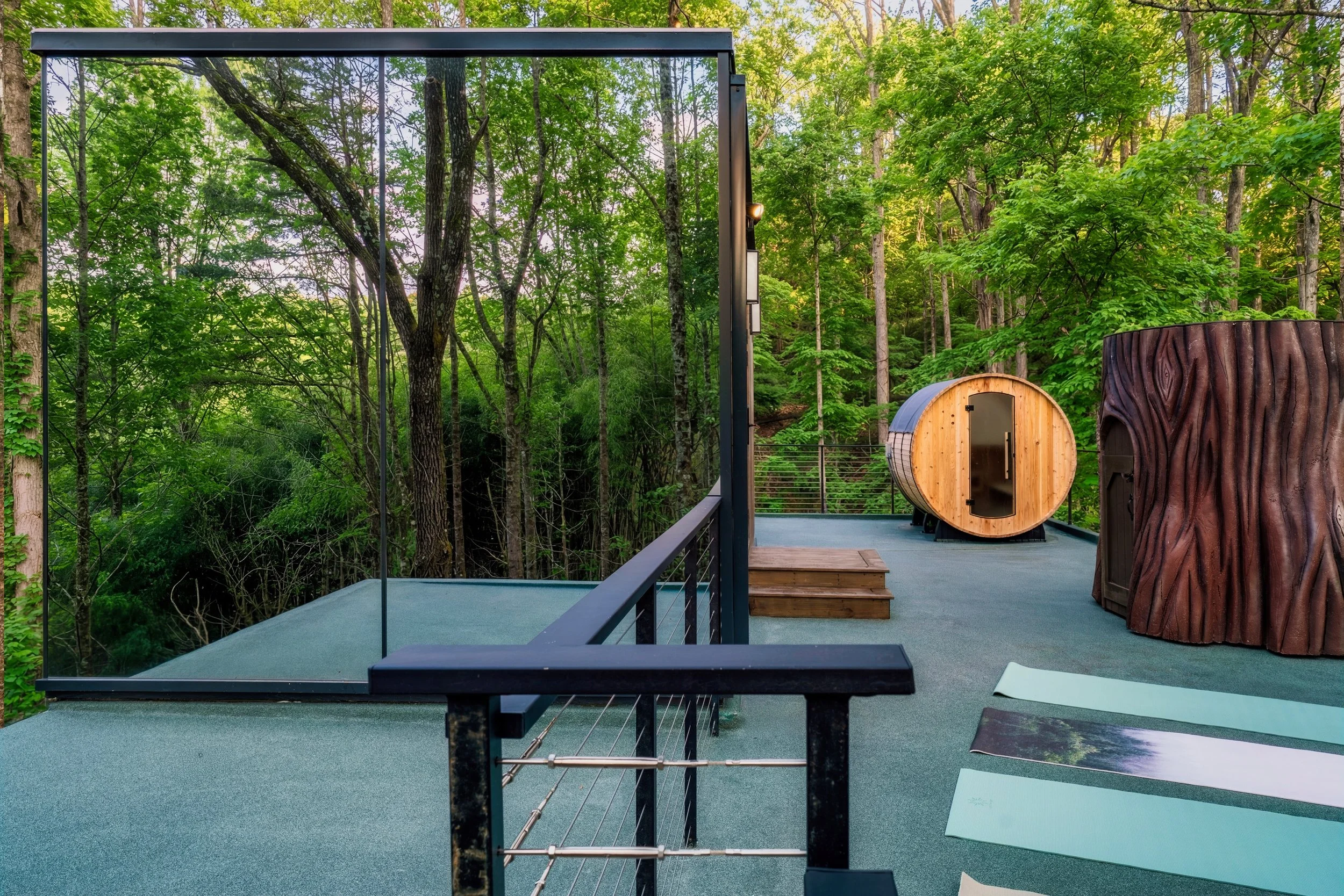 At the top of The Hideout, in the tree canopy, your personal sanctuary awaits with a private Cedar barrel sauna with panoramic forest view